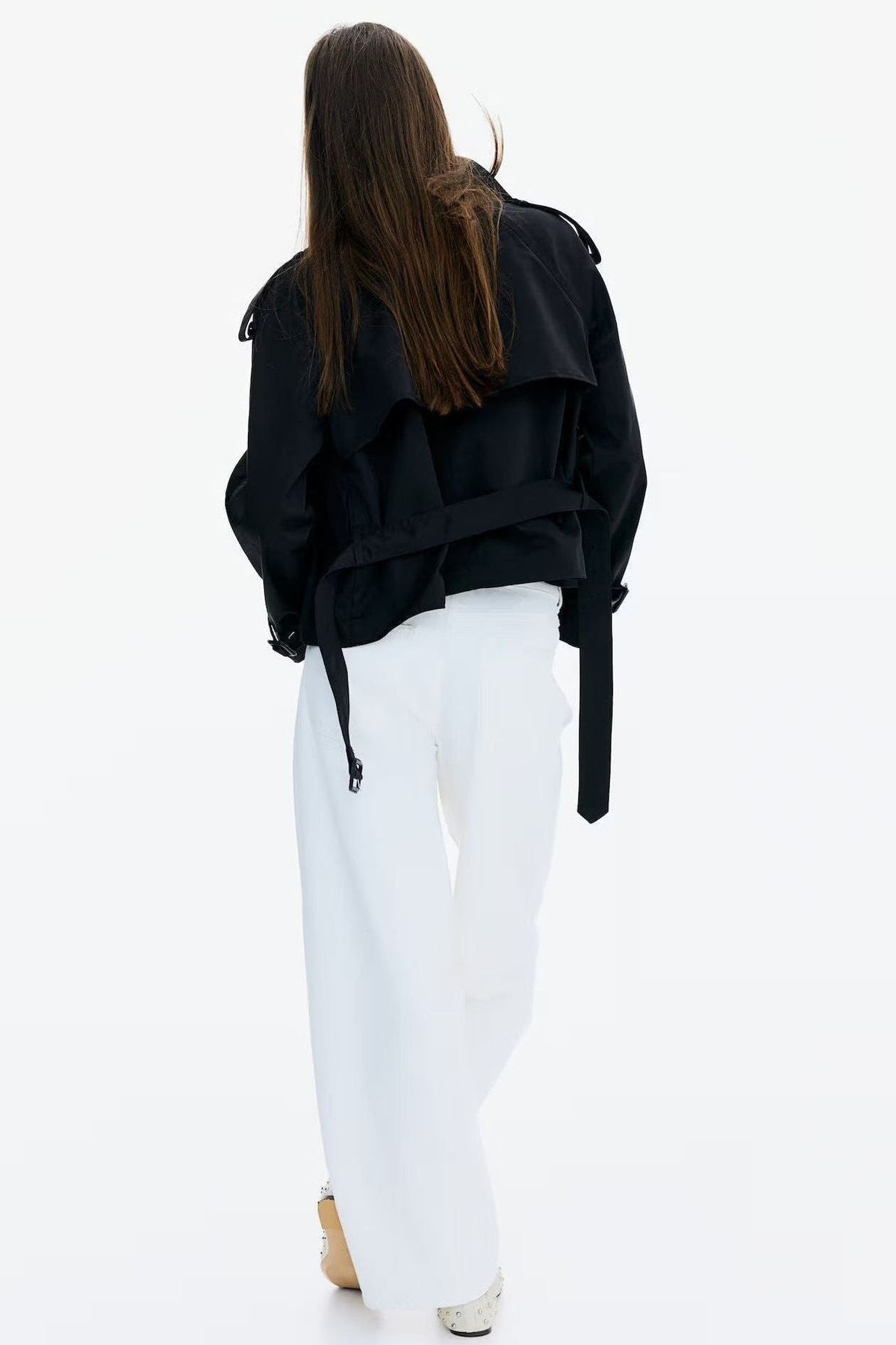 • Zeitlose Silhouette: Klassischer Trenchcoat in moderner, femininer Kurzform.