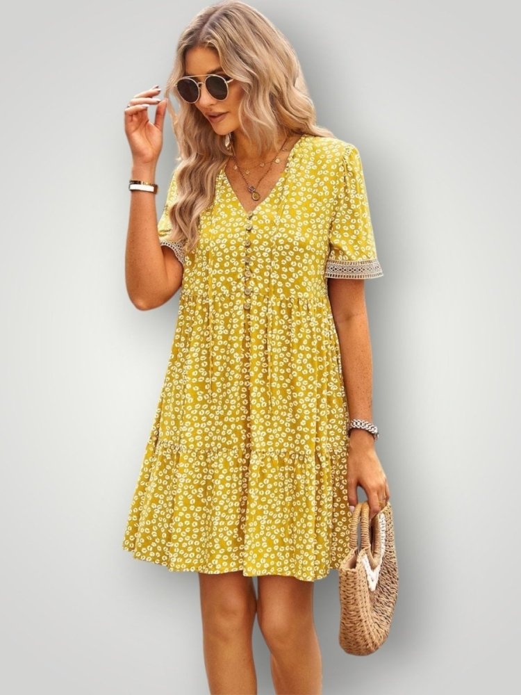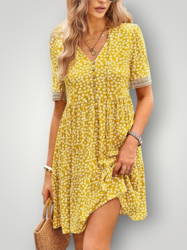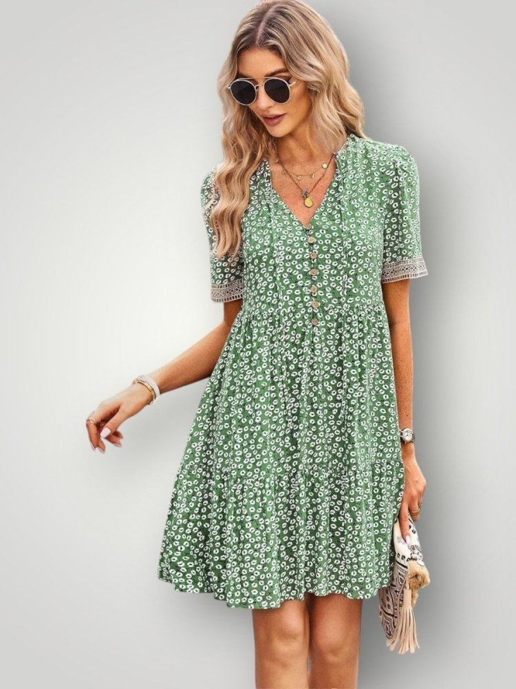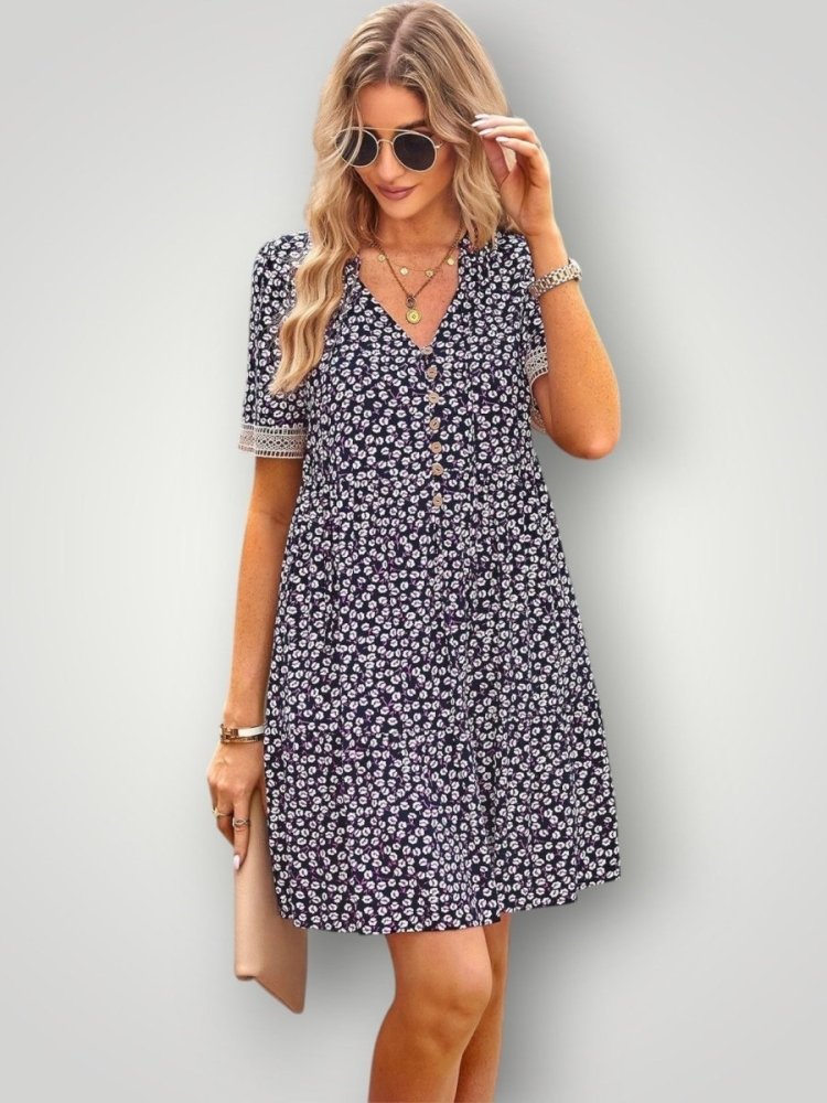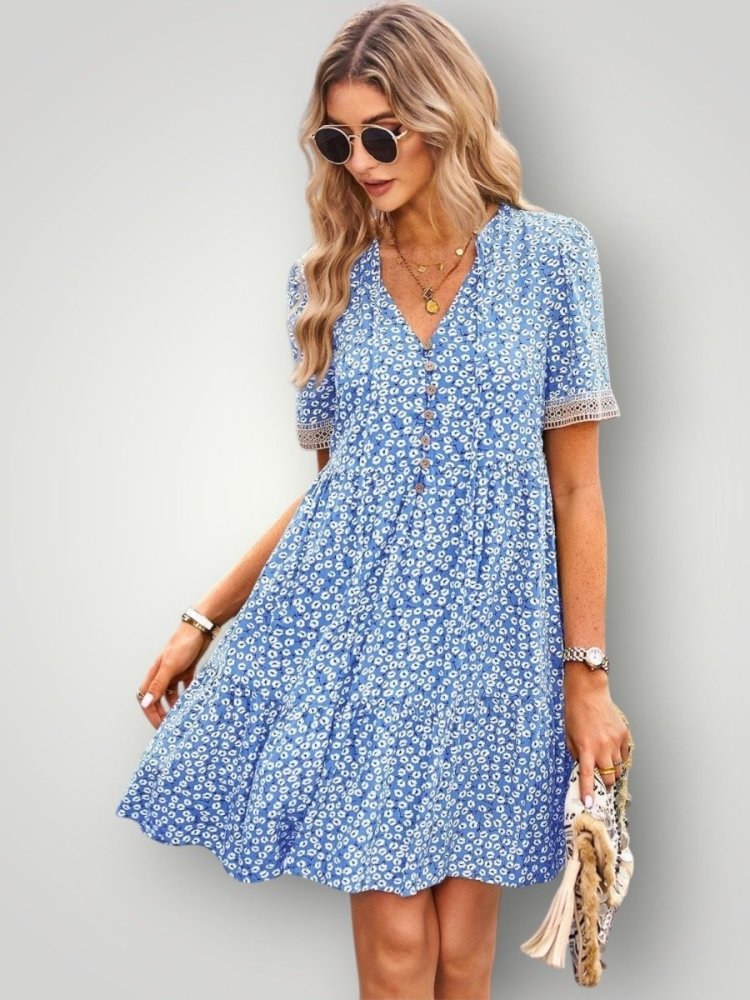 Dieses Blütenmuster Kleid wird schnell zu Ihrem Lieblingsstück. Es bietet nicht nur Stil, sondern auch Komfort, sodass Sie sich den ganzen Tag über selbstbewusst und schön fühlen können. Perfekt für Sommerfeste oder einfach für einen Tag in der Stadt, es passt sich Ihrem Lebensstil an und lässt sich mühelos stylen.